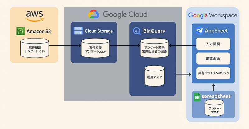 [アプリの概要]AWSとGoogle Cloudを連携し、ノーコードでデータ活用を加速。AppSheetとBigQueryで実現する柔軟な開発術