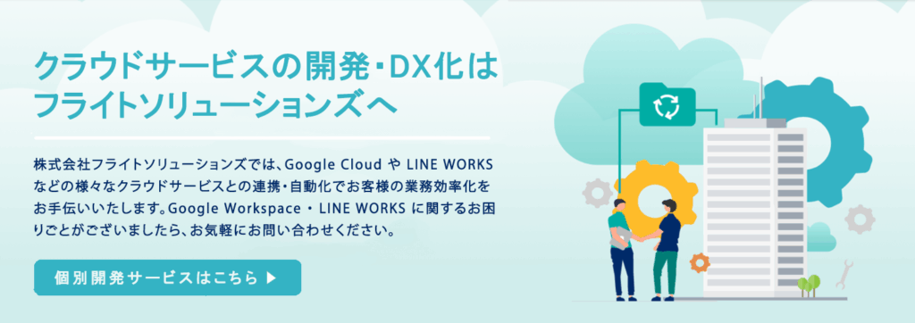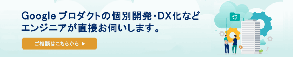 このように当社ではGoogle関連のサービスを活用したアプリケーション開発を行い、Google Workspaceをより便利にご利用頂けるようなお手伝いをしています。Google Workspaceを利用する上でのお困りごとがあればお気軽にご相談ください。