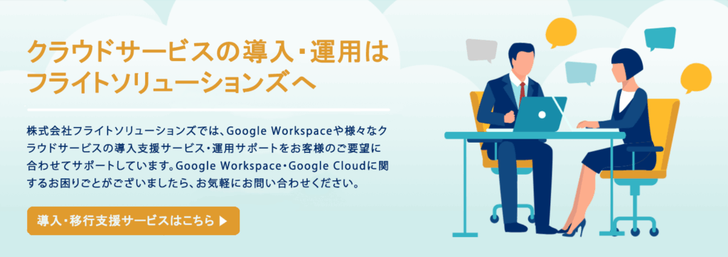Google Workspaceの導入支援ならフライトソリューションズにお任せください。